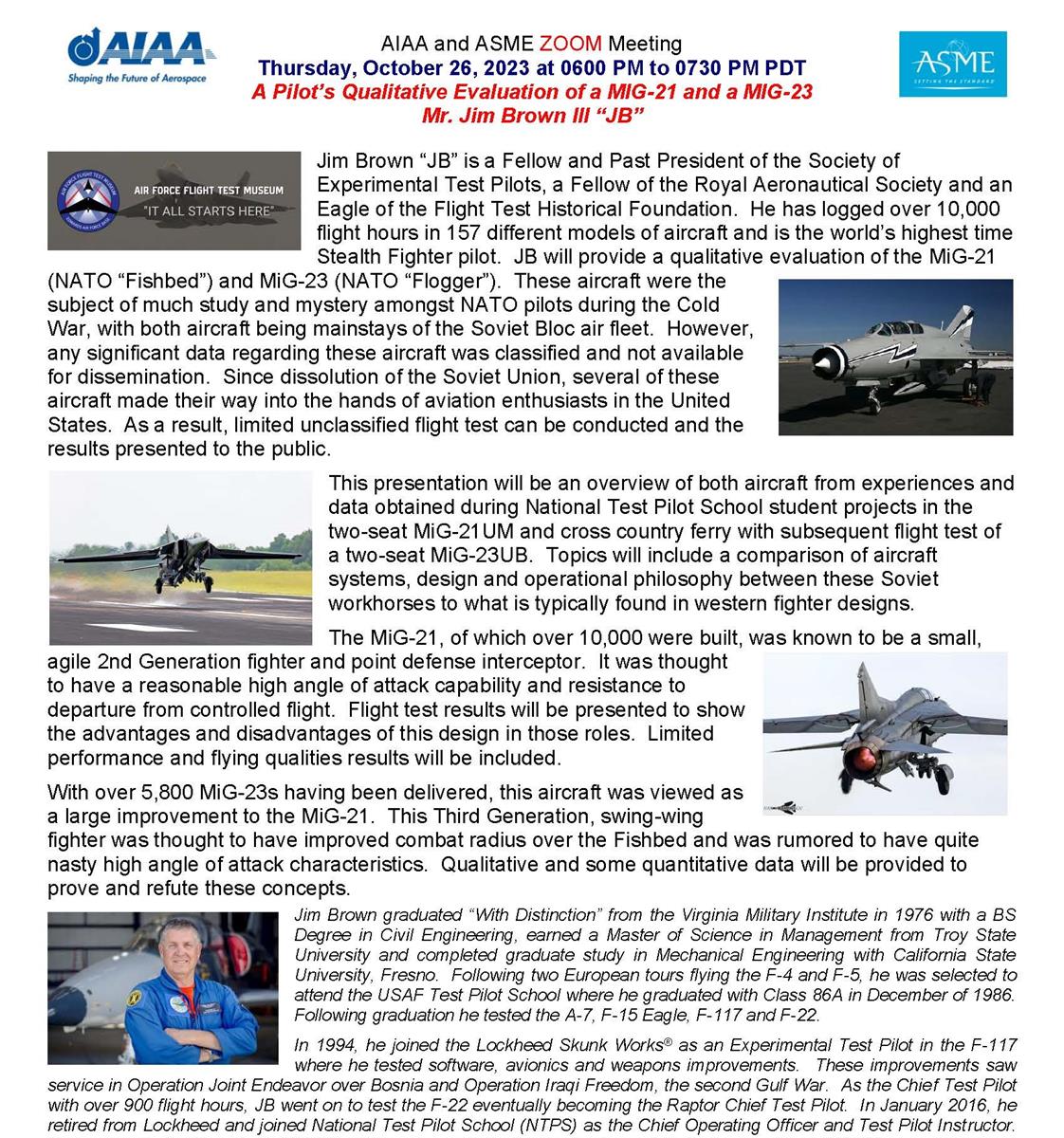 AIAA – ASME ZOOM Meeting