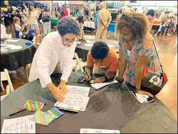 UTA Aero Mavs new Rocketry Chief Marouane Aimouch worked with kids to analyze flight test results