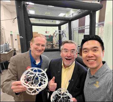 Lockheed Martin Program Manager (ret.) and AIAA Associate Fellow Bob Wetherall presented the FALCON (Force Application and Launch from CONUS) hypersonic technology demonstration program to Baylor students and faculty on 20 April at Baylor University in Waco, TX. Dr. Liang Sun, Baylor’s AIAA Student Chapter sponsor, then provided Bob and James Sergeant, North Texas Section chair, (pictured below) a tour of Baylor’s engineering labs, wind tunnels, and UAS labs that have been developed over the last several years. Baylor just started their AIAA student chapter last year. More event photos are available at AIAA North Texas Engage.