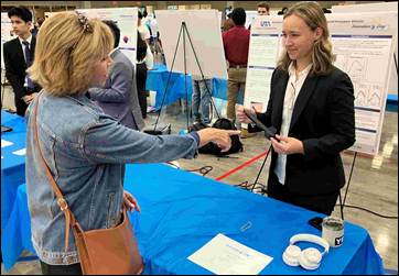 On 14 April 2026, UTA Engineering hosted its annual Innovation Day showcasing 169 UTA graduate and undergraduate research projects and innovations. Pictured above, AIAA North Texas student member Austen Smith discusses her project Aerothermal Analysis and TPS Sizing of High-Speed Aerospace Vehicles with an attendee. UTA Associate Professor and AIAA Associate Fellow Dr. Bernd Chudoba is her project advisor. AIAA North Texas supported the event with judges Dr. Dennis Finley (pictured below) from the North Texas Advisory Board and Mike Fox, Section vice chair. More event photos are available at our AIAA North Texas Engage website.