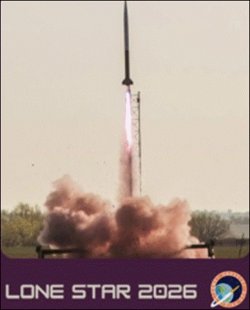 At the 2nd annual Lone Star Cup on 22 March 2026, UTD Comet Rocketry took home the 3rd place trophy in Seymour, TX. UTD reports that despite challenges faced before launch, their 10 ft.-tall rocket Persephone (pictured above) had a perfect flight and recovery with a max altitude of 10,875 ft, max velocity of 1138 ft/s, and max acceleration of 18 g’s.