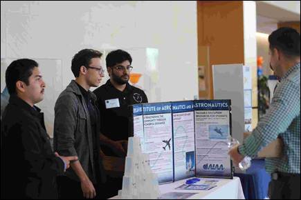 UT Arlington and UT Dallas AIAA student branches presented information about their programs in the main session as well as outside in the foyer with their rockets, UAVs, and projects.